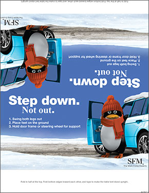 Slip-and-fall injuries in parking lots are very common, can be severe, and are a risk for many types of businesses. Use the “step down, not out” method to reduce the chance of slipping.